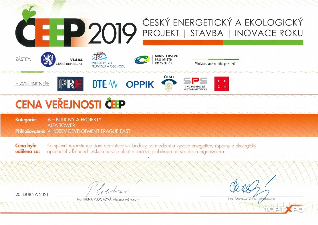 20.4. jsme převzali ocenění za náš projekt HONEST Říčany v renomované soutěži Český energetický a ekologický projekt roku 2019. Získali jsme velmi zásadní Cenu veřejnosti, za kterou tímto děkujeme!